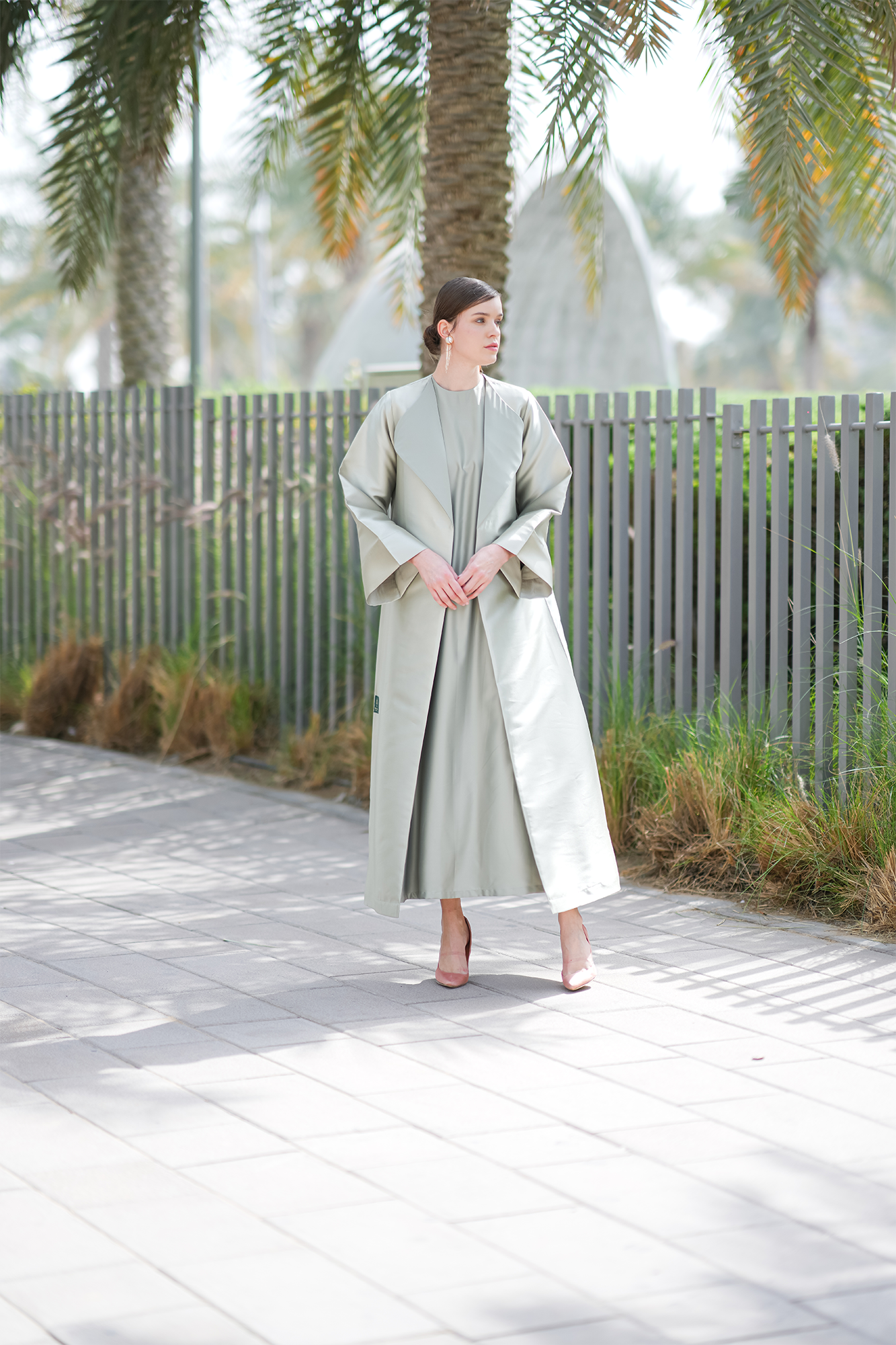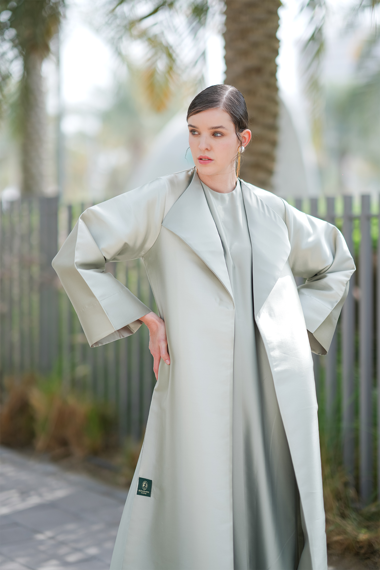 Our luxurious Theresa Abaya is meticulously crafted from premium Mikado silk, offering an elegant and refined look with a touch of sophistication. It comes with a matching inner dress and scarf for a complete look.